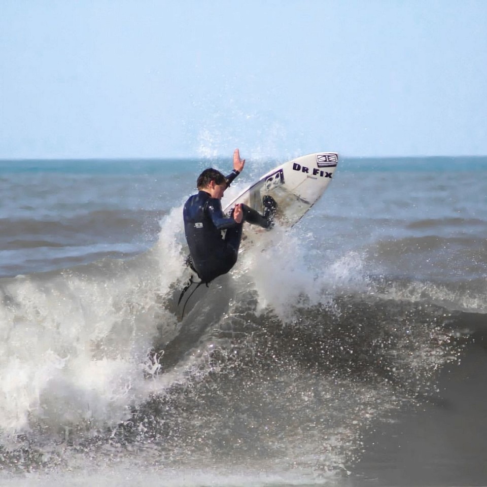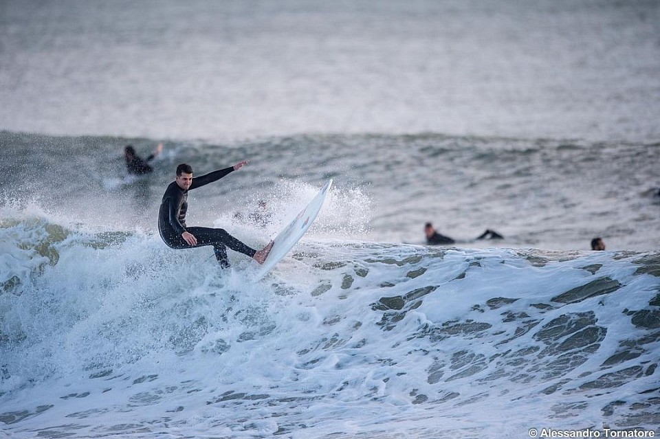Oggi continua a spingere forte, con uno stile potente e pulito, rispettato da chiunque frequenti gli spot italiani. È uno di quei surfisti che, se volesse davvero entrare nel sistema delle competizioni, potrebbe arrivare ovunque… ma il mare per lui è prima di tutto vita, non una classifica.
